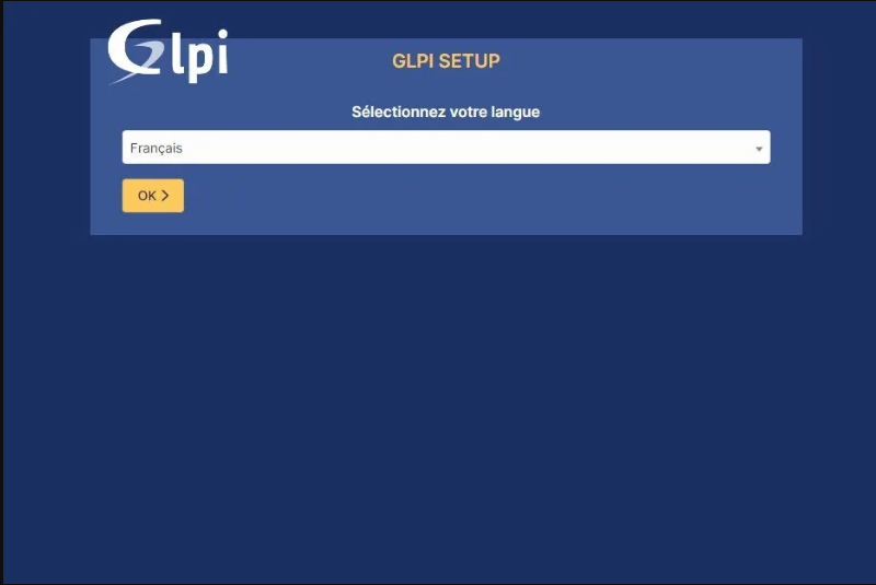 Vous devriez vous retrouver nez à nez avec GLPI, vous pouvez sélectionner en premier temps la langue.