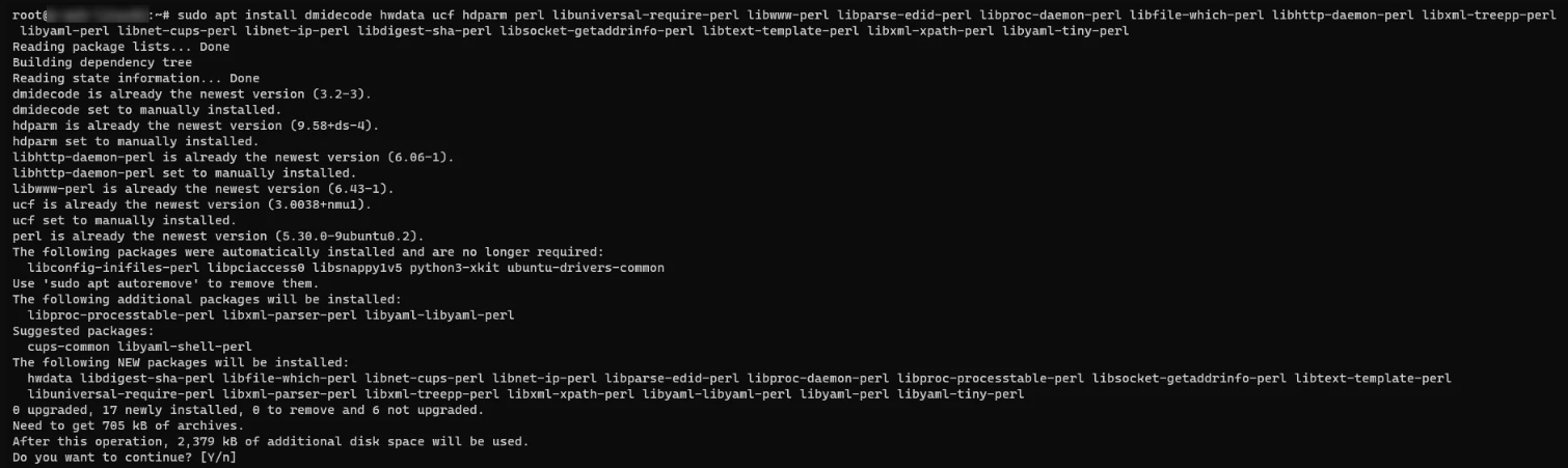 sudo apt install dmidecode hwdata ucf hdparm perl libuniversal-require-perl libwww-perl libparse-edid-perl libproc-daemon-perl libfile-which-perl libhttp-daemon-perl libxml-treepp-perl libyaml-perl libnet-cups-perl ibnet-ip-perl libdigest-sha-perl libsocket-getaddrinfo-perl libtext-template-perl libxml-xpath-perl libyaml-tiny-perl -y