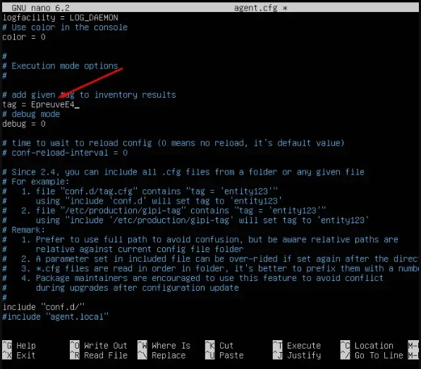 Nous allons éditer le fichier agent.cfg pour mettre l'adresse du serveur et le tag