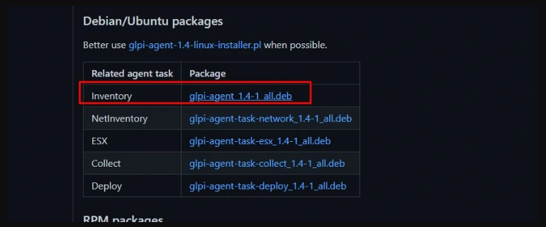 En premier, il faut aller récupérer l'URL fichier .deb d'installation de l'agent sur le dépôt GitHub. Releases · fusioninventory/fusioninventory-agent · GitHub