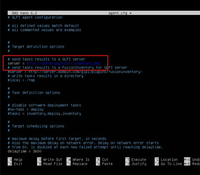 Ensuite, nous allons configurer l'agent cfg comme dans l'installation de fusioninventory